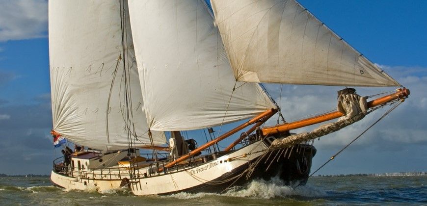 Hell, gemütlich, mit einer weiblichen Kapitänin, das ist De Vrouw Dina, eine komfortable, gemütliche, traditionelle Seetjalk, Baujahr 1897. Das Schiff verfügt über einen geräumigen und hellen Innenraum und ist mit allen Annehmlichkeiten ausgestattet. Die Kombüse ist gut ausgestattet. Die Kojen (Betten) sind in 2-Personen-Kabinen untergebracht, jede mit eigener Dusche und Toilette.