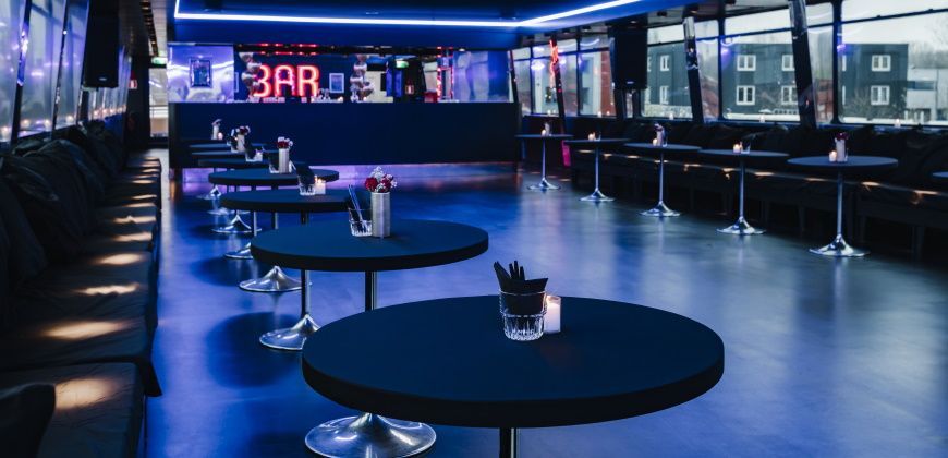 Na een stijlvolle ontvangst aan de kade, maakt men via de trap direct een entree in de grootste zaal van het schip. De zwarte bar - Le Bar Noir is mysterieus, elegant, chic en heeft een panoramisch uitzicht over het water. In de wintermaanden de perfecte plek voor een bijzondere setting, maar ook zomers hebben gasten hier een prettige mogelijkheid te dineren of even tot rust te komen. De veelzijdige ruimte biedt mogelijkheid zowel in sit-down als walking set up gasten te ontvangen. Daarnaast geven de technische voorzieningen opties voor branding uitingen en ledverlichting in gewenste kleuren, om sfeer en setting geheel te personaliseren.