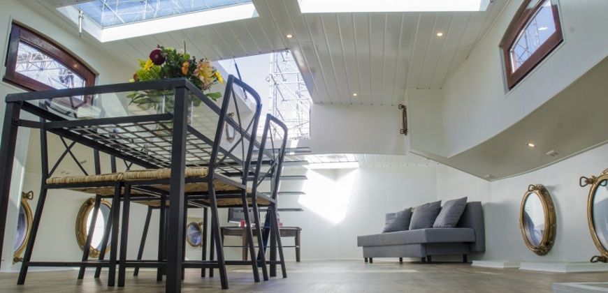 Een zeer mooi woonboot in de buurt van de Magere Brug in Amsterdam.
